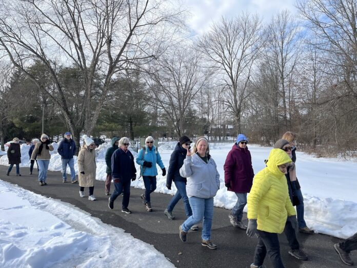 In February, the Saturday Walking Club of the Lawrence Hopewell Trail Corporation braved the cold together. The good news: the snow is melting and March should bring a warmer morning to the trail. Join the Saturday Morning Walking Club on Saturday, March 14 at 9:30 a.m. They’ll meet in Village Park at the Bergen Street parking lot and head out for a relaxed walk together.